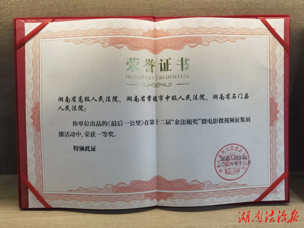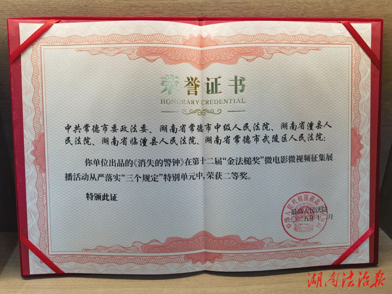 雙獎加冕!常德法院2部作品獲全國法院 “金法槌獎”一、二等獎