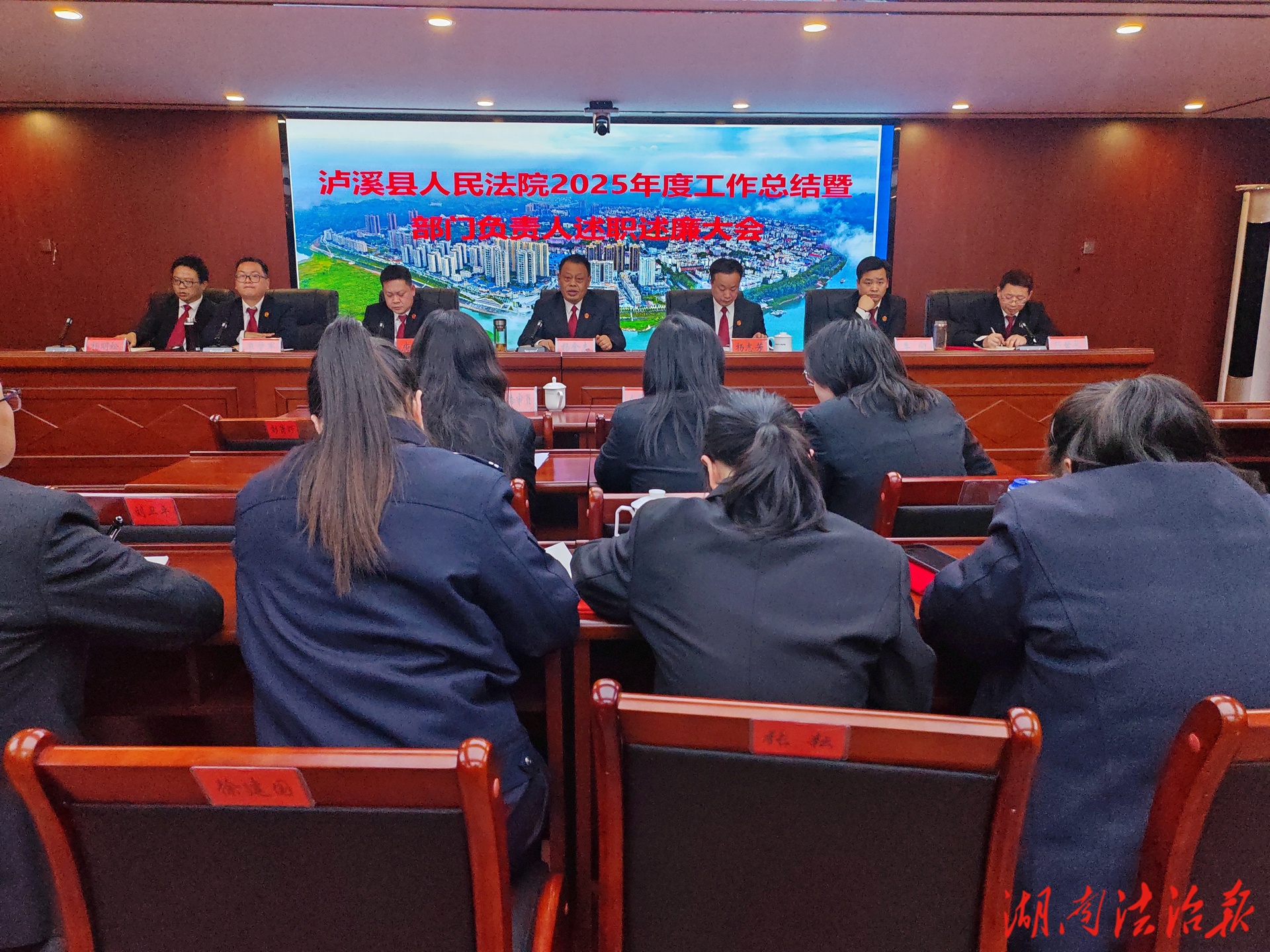 湖南法治報(bào)訊(通訊員 李真)2月12日,瀘溪縣人民法院召開2025年度工作總結(jié)暨部門負(fù)責(zé)人述職述廉大會(huì)。會(huì)議全面回顧總結(jié)2025年工作成效,深入分析研判當(dāng)前形勢(shì),謀劃部署2026年各項(xiàng)任務(wù),并開展節(jié)前廉政警示教育。院黨組書記、院長(zhǎng)楊金志出席會(huì)議并講話。黨組副書記、分管日常工作副院長(zhǎng)楊志芳主持會(huì)議。全院干警及部分人民陪審員代表參加會(huì)議。