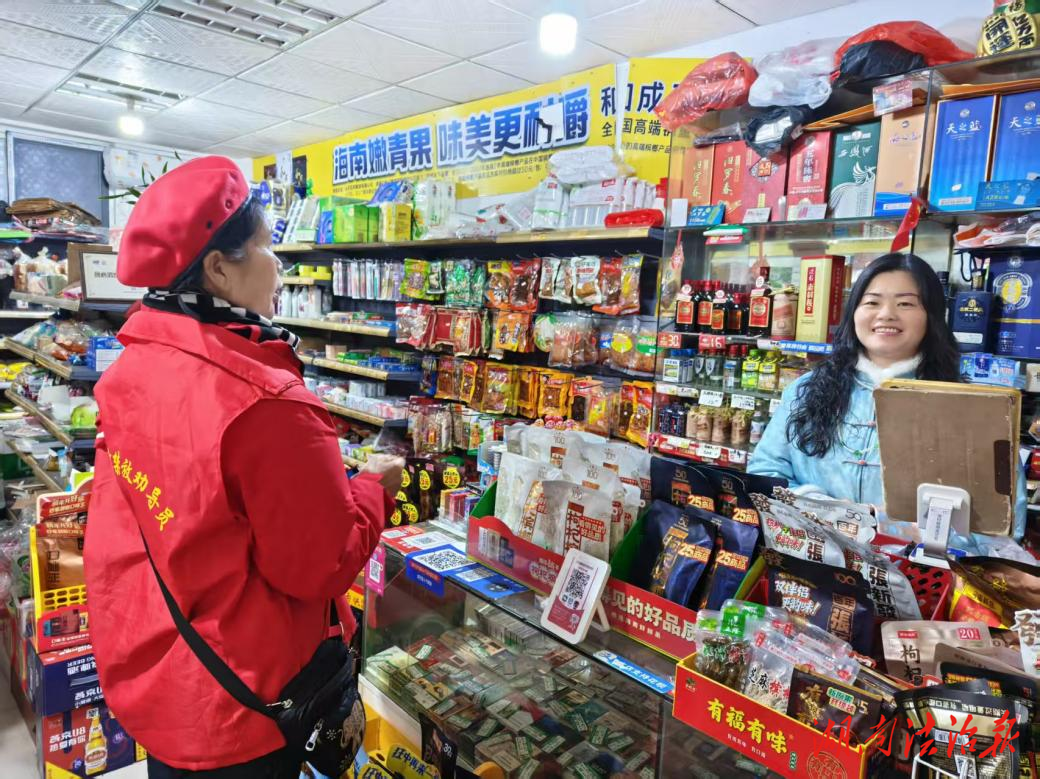 志愿者正在商鋪面對(duì)面講解煙花爆竹禁燃禁放規(guī)定。