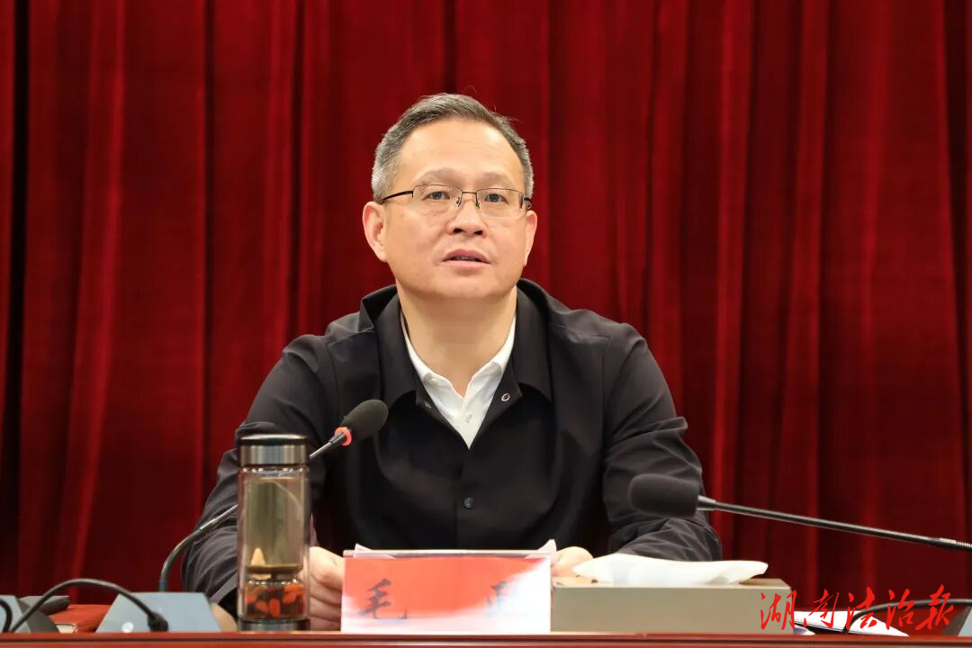 毛政指出,要鑄牢忠誠之魂,旗幟鮮明講政治,把準政治方向,強化理論武裝,增強大局意識,主動把政法工作放到經(jīng)濟社會發(fā)展全局中去謀劃,錨定“打造永州南部經(jīng)濟發(fā)展軸區(qū)域中心城市”戰(zhàn)略目標,圍繞“163”工程實施,推動高質(zhì)量發(fā)展和高水平安全的良性互動。要突出實干之要,挺膺擔(dān)當(dāng)保平安,要堅定不移捍衛(wèi)政治安全、維護社會安定、確保人民安寧、推動網(wǎng)絡(luò)安全。要扛牢護航之責(zé),凝心聚力優(yōu)法治,以法治方式優(yōu)化營商環(huán)境,以法治力量促進公平正義,以法治途徑增進民生福祉,以高質(zhì)量法治建設(shè)護航全縣高質(zhì)量發(fā)展。要砥礪奮進之志,持之以恒強隊伍,要從嚴治警,從實訓(xùn)警,從優(yōu)待警,著力鍛造讓黨放心、讓人民滿意的新時代政法鐵軍。全縣各部門要強化憂患意識、樹牢底線思維,各司其職、各負其責(zé),凝聚起政法、公安工作的強大合力,為推動中國式現(xiàn)代化寧遠實踐作出更大貢獻